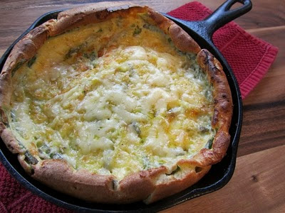 Hubs didn't get home from doing chores at the farm until 3pm today. No Sunday breakfast or lunch for us, but instead we had a very, very late brunch. It was a simple, but fabulous menu of Asparagus Popover, toasted Cinnamon Raisin Breakfast Bread (courtesy of Sara Lee), and fresh squeezed orange juice. Comfort food on a cold day On My Plate.